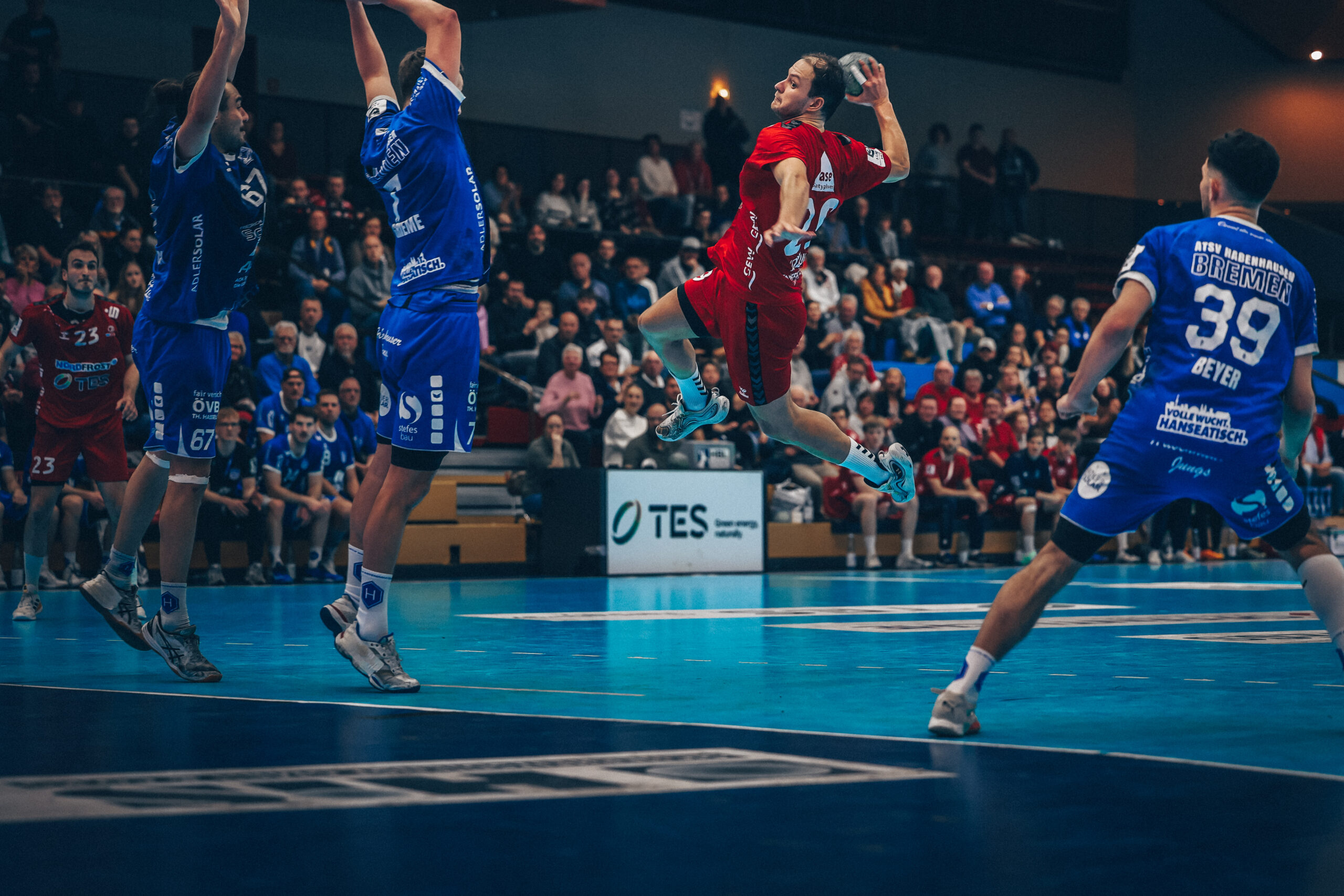 Nach einer deutlichen Leistungssteigerung zu den letzten Spielen haben die Drittliga-Handballer des Wilhelmshavener HV ihr Heimspiel gegen den TuS Spenge mit 33:17 gewonnen. „Wir haben viel investiert und uns am Ende endlich mal belohnt“, zeigte sich auch Trainer Christian Köhrmann angetan vom Auftritt seines Teams. Den Grundstein für den Erfolg legten die Jadestädter einmal mehr in der Abwehr, hinter der Konstantin Madert im Tor mit einigen Paraden glänzte. Und auch Jakub Lefan trug mit drei gehaltenen Strafwürfen seinen Teil bei. Kurz vor der Pause zog der WHV davon und ging mit einem klaren 16:8-Vorsprung in die Kabine, der nach dem Seitenwechsel kontinuierlich ausgebaut wurde. Köhrmann verzichtete auf den angeschlagenen Rene Drechsler, so dass es die Rechtshänder im Rückraum richten mussten. Hier erledigten vor allem Matej Kozul, Jonas Schweigart, Tobias Schwolow und Jan Bennet Behrends ihre Aufgaben über weite Strecken gut.